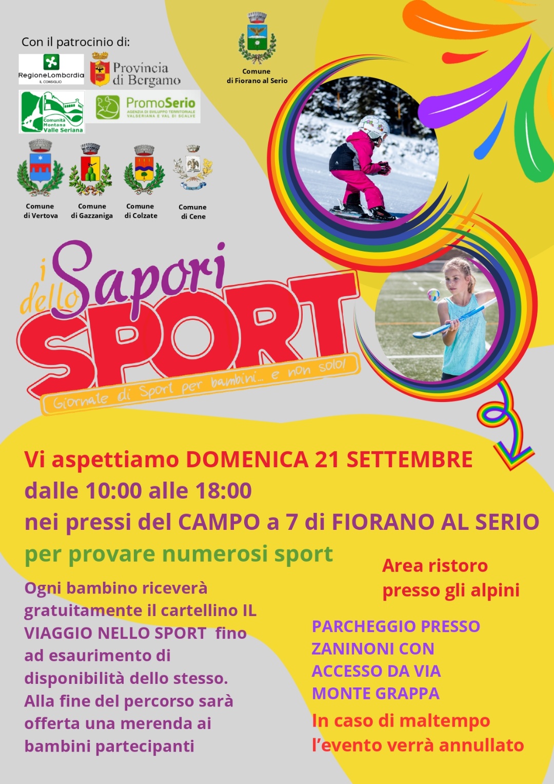 Tornano "I sapori dello sport" con possibilità per tutti i bambini di provare tantissime discipline sportive e gustare una deliziosa merenda