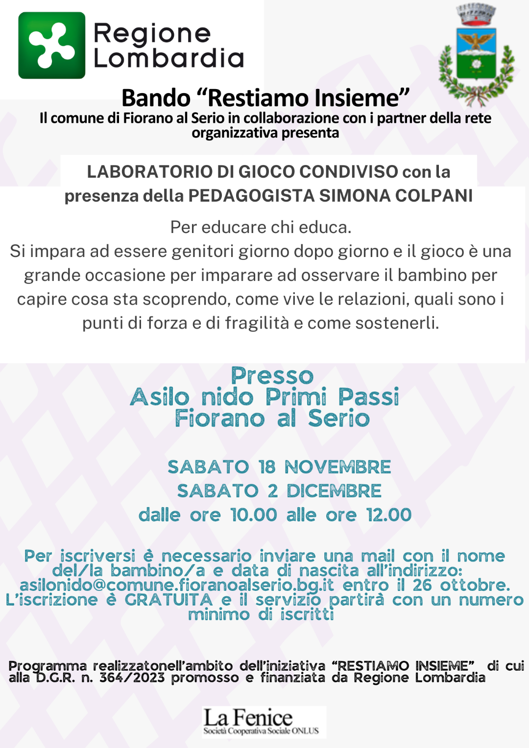 LABORATORIO DI GIOCO CONDIVISO con la presenza della pedagogista Simona Colpani