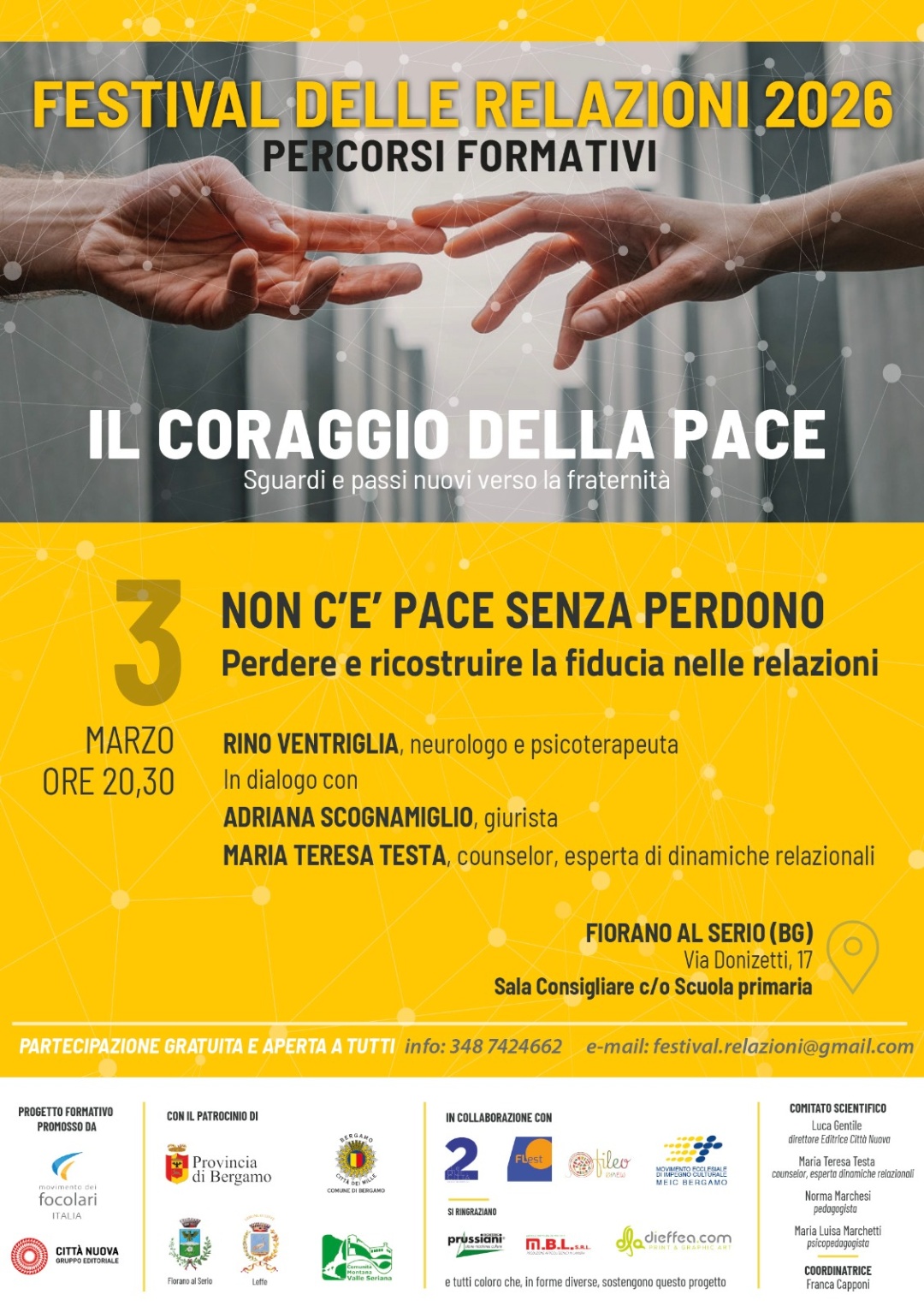 Non c'è pace senza perdono - Il coraggio della pace - 3 marzo presso sala consigliare c/o scuola primaria di via Donizetti