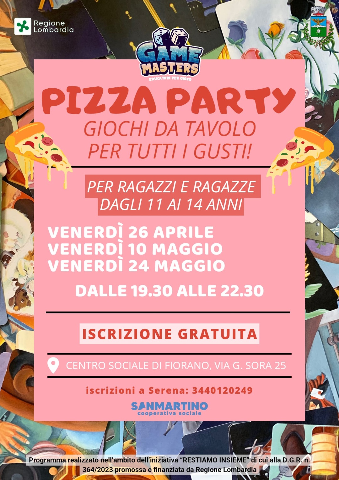 PIZZA PARTY per ragazzi dagli 11 ai 14 anni