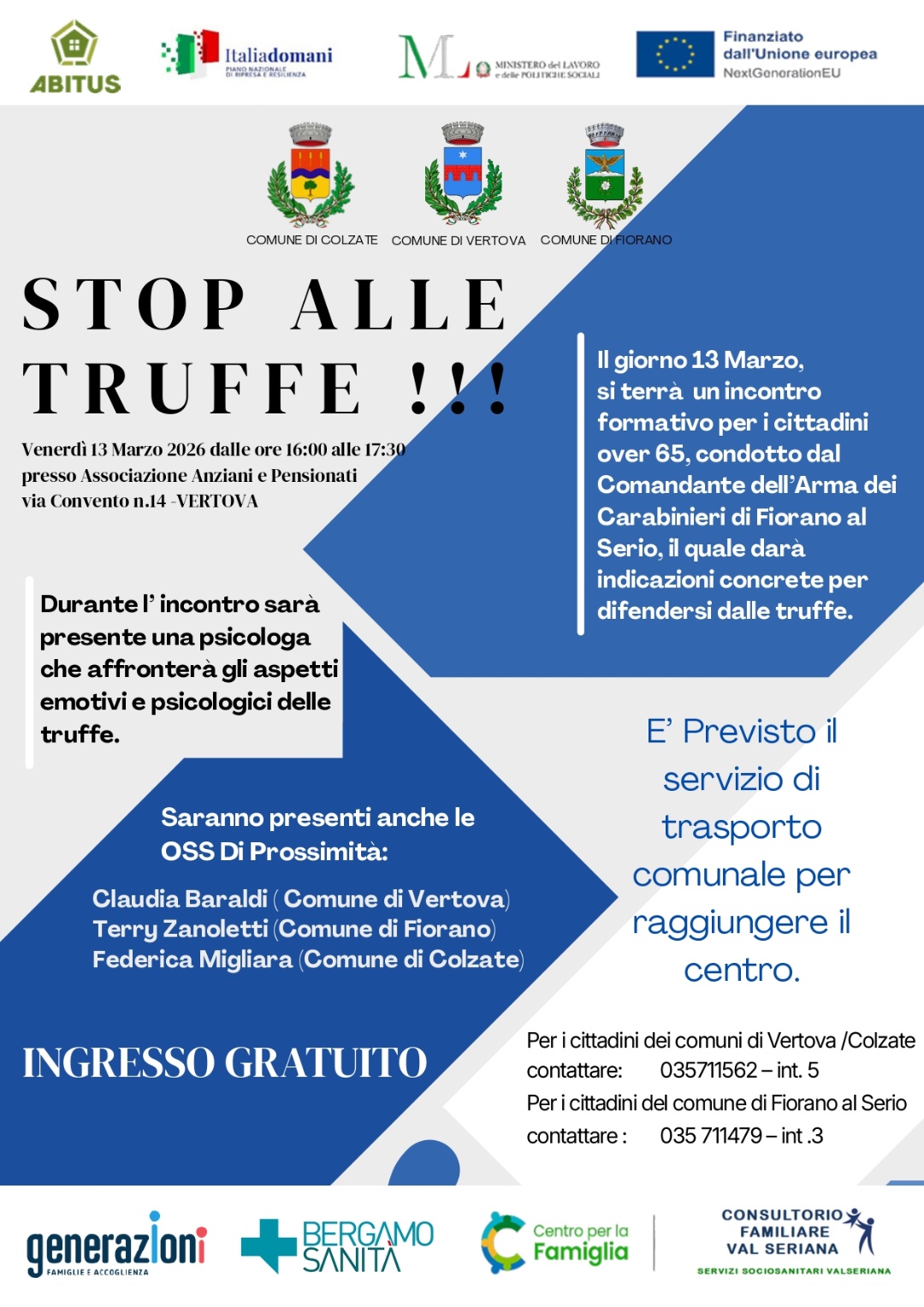 Incontro formativo per cittadini over65 condotto dal Comandante dell'Arma dei Carabinieri di Fiorano al Serio